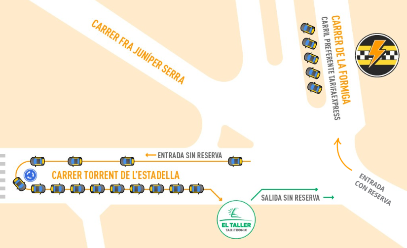 Hemos habilitado una zona especial para TarifaExpress en la C/ de la Formiga, en frente del Taller Taxitronic para realizar el cambio de tarifas del sábado 18 de enero de 06:00 a 21:00 horas y el domingo 19 de enero de 07:00 a 21:00 horas.
